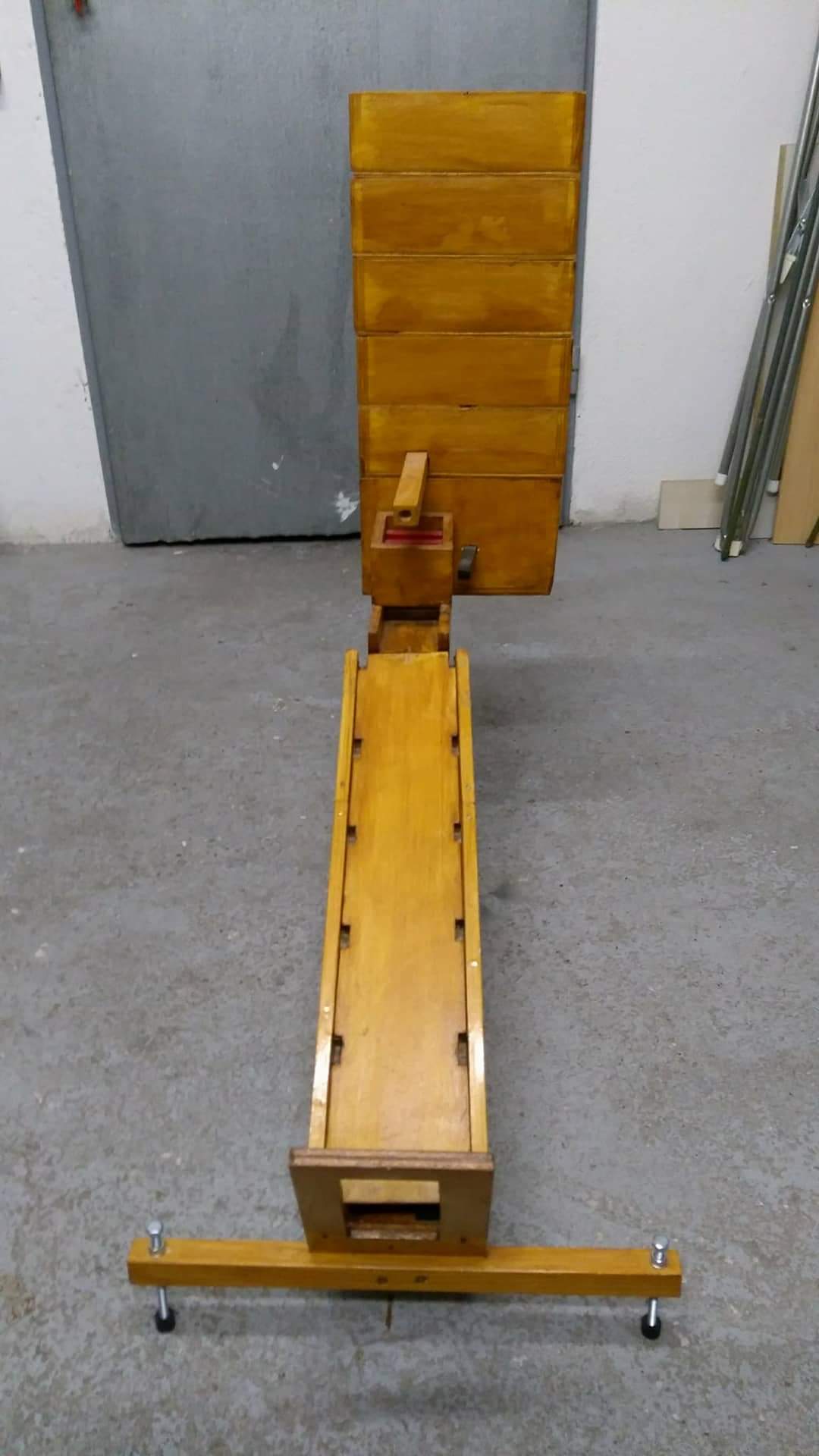 Die Maschine kommt ohne eine einzige Schraube aus. Die vier Plattformen laufen über einem abgestuften Boden (erst habe ich gedacht das sind Treppen) die es ermöglichen den Kalkstein regelrecht einzukeilen und dann regelrecht zu zermalmen .