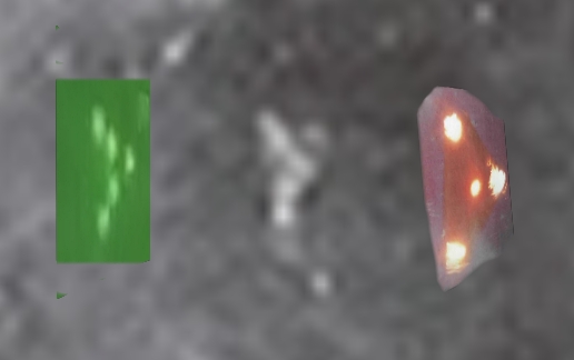 Du irrst. Das Mondbild ist völlig unverändert, nur vergrößert. Du siehst dort ein "Triangel-Ufo", obwohl da gar keines ist. Nur die beiden Beispiele für das, was man sehen SOLL, sind links und rechts klar erkennbar draufgelegt. Das UFO, das du in der Mitte sogar jetzt noch zu sehen glaubst, ist keines. Das sind bloß unscharfe Krater.