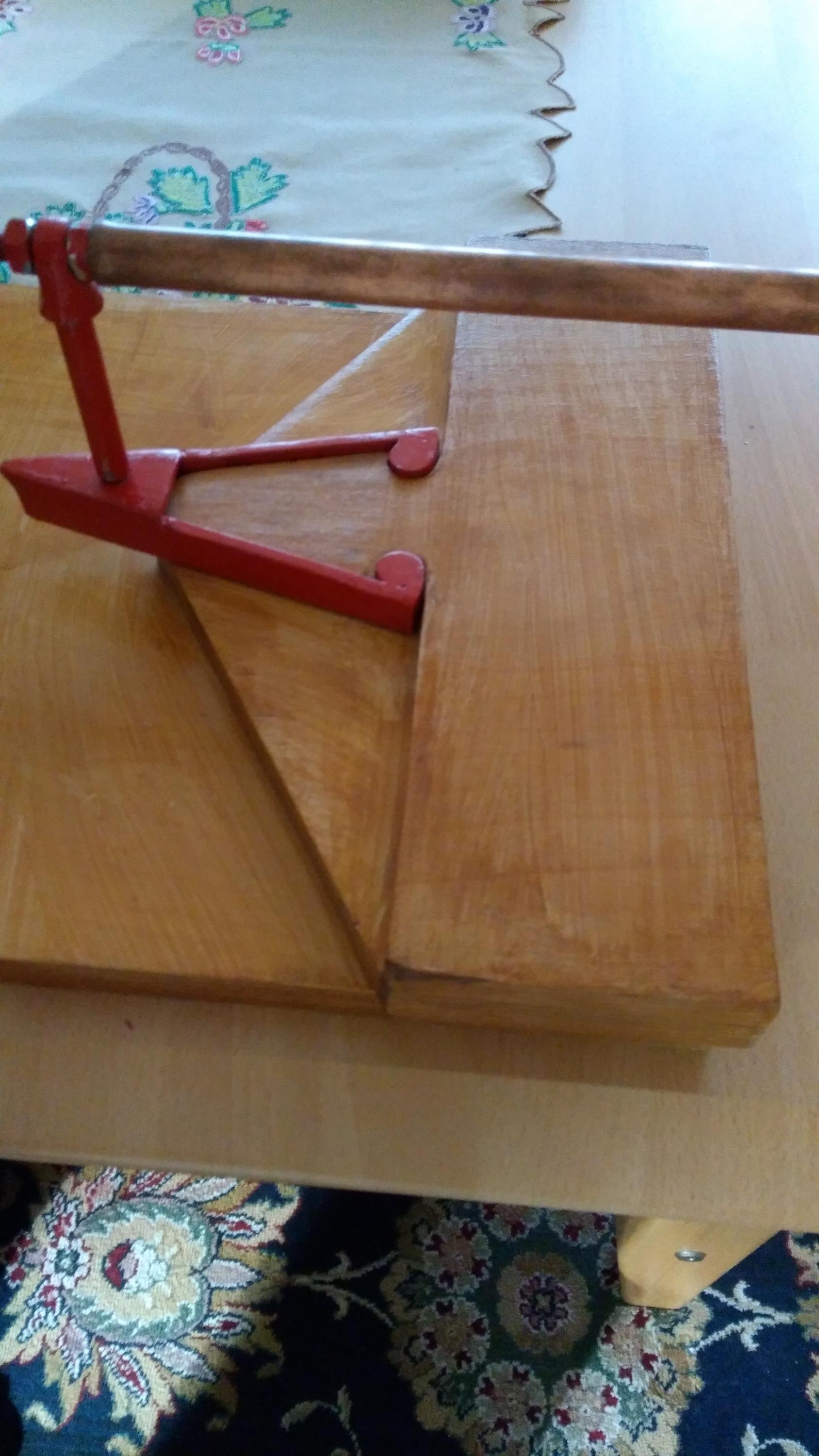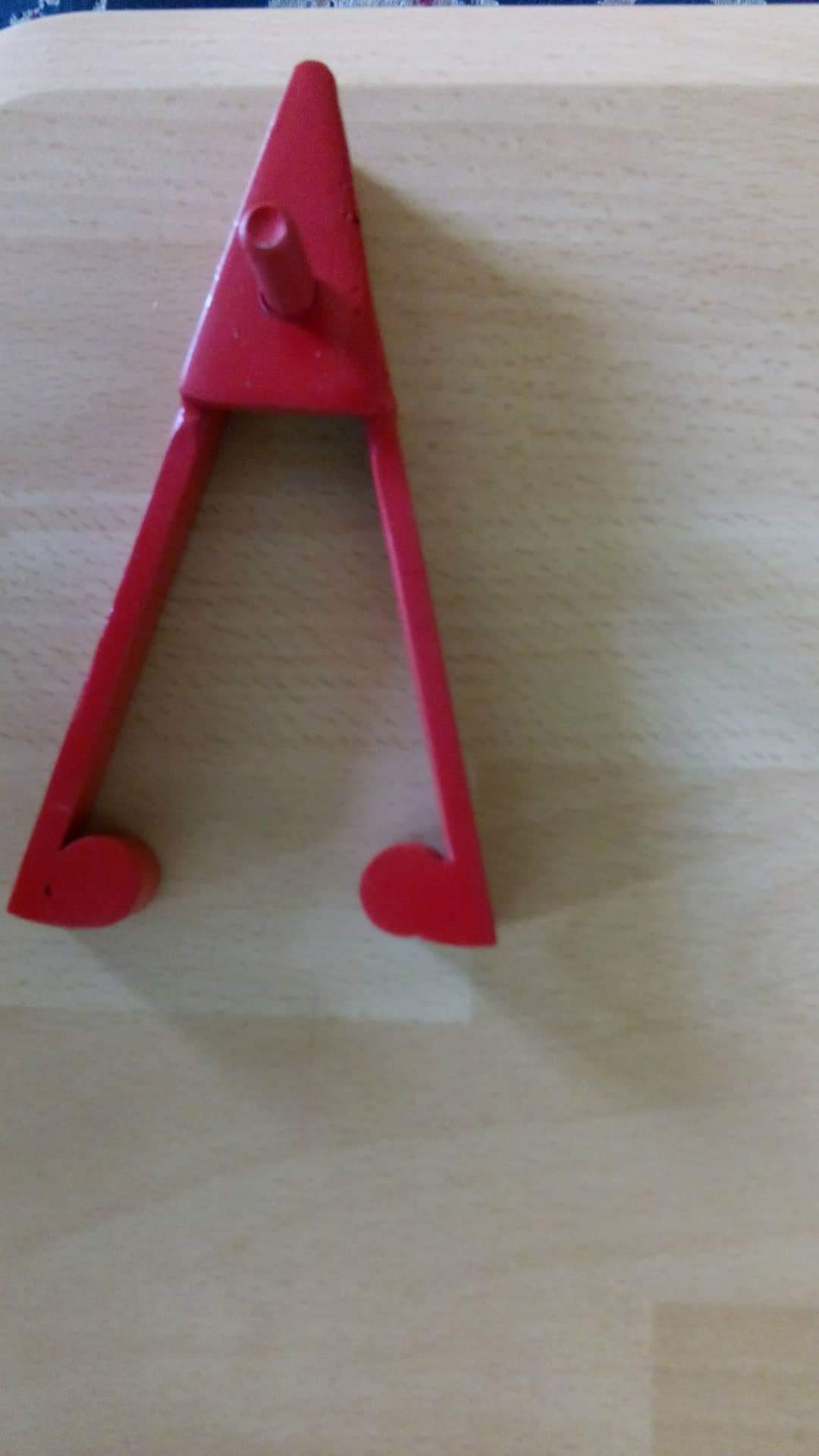 Also habe ich eine Spange gebaut ,die genau in die beiden Öffnungen passt . Ich nenne diese Spange ,die Spange der Götter. Diese Spange ist mit einem nach oben stehenden Horn versehen ,die in einer Öse an der Stange festmacht, die vom Zahnrad kommt.